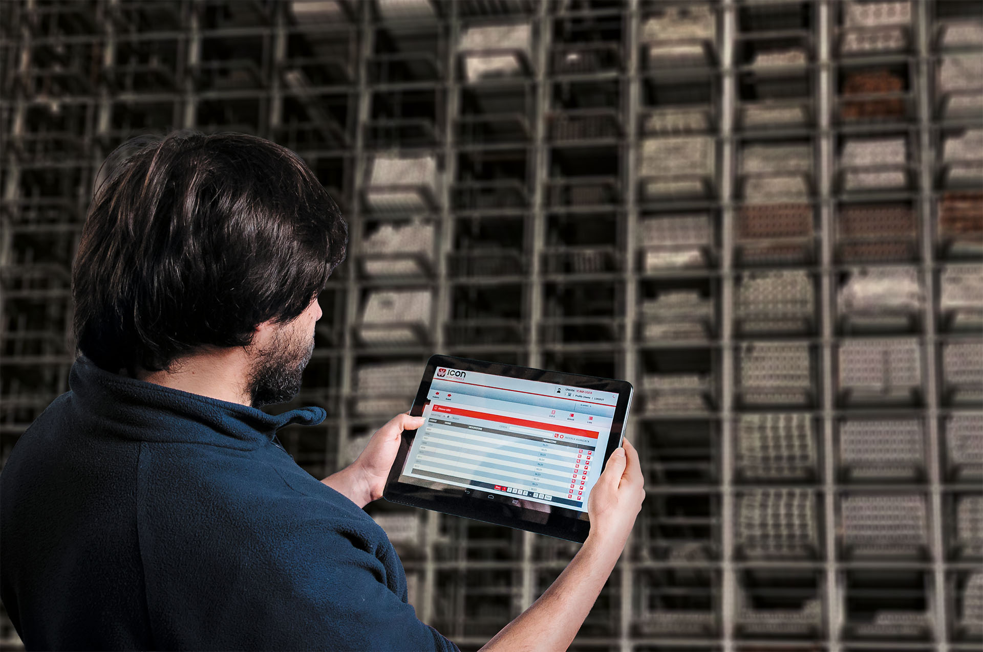 Il sistema è governato da ICON, il software proprietario ICAM. Missioni automatizzate di deposito e prelievo, tracciabilità completa per codice, lotto e ordine, gestione utenti con autorizzazioni differenziate e monitoraggio in tempo reale dello stock — incluse le aree a terra esterne al magazzino automatico. L'integrazione con ERP e WMS avviene nativamente, senza sviluppi custom.