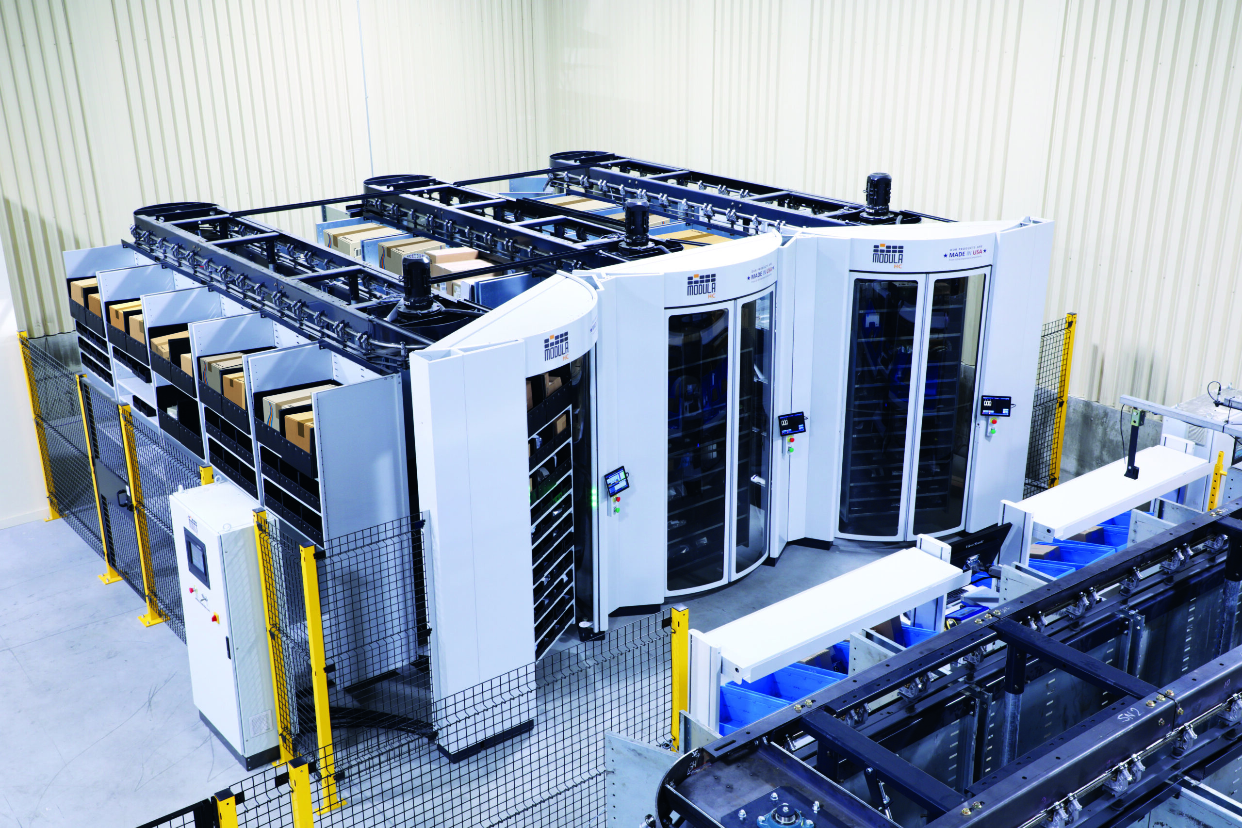 Il Carosello Orizzontale Modula è un magazzino automatico orizzontale composto da una serie di contenitori (bins) che ruotano orizzontalmente su un binario in acciaio inox e portano i prodotti pronti per il prelievo all’operatore nella zona di picking secondo il concetto di merce all’uomo.